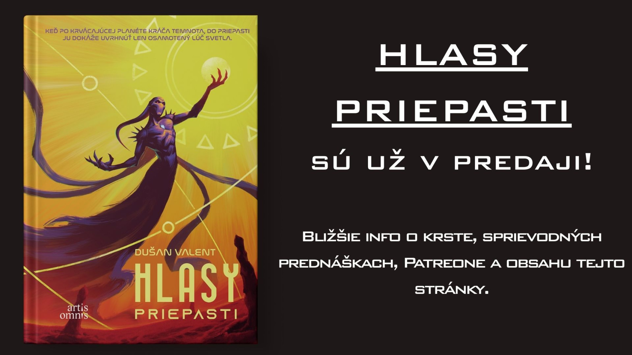 2025-04-15 13:53:00Hlasy priepasti dorazili do distribúcie! Krst sa uskutoční na Slavcone v sobotu 26. 4. o 10:00. Na Slavcone aj levočskom Minimoviecone sa však môžete tešiť aj na tematické prednášky. Ak chcete preniknúť viac do zákulisia alebo dokonca budúcnosti príbehu, môžete tak urobiť na Patreone autora, ktorý je už spustený - príspevkom podporíte pokračovanie projektu, konkrétne prácu na ilustráciách pre budúce knihy série.